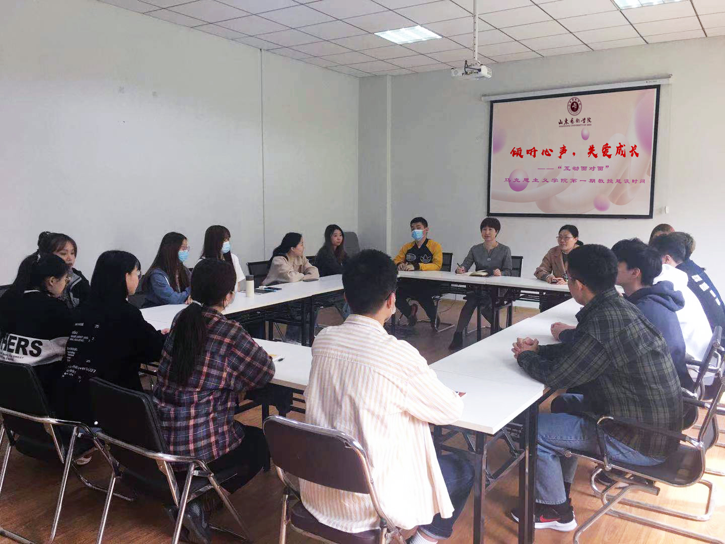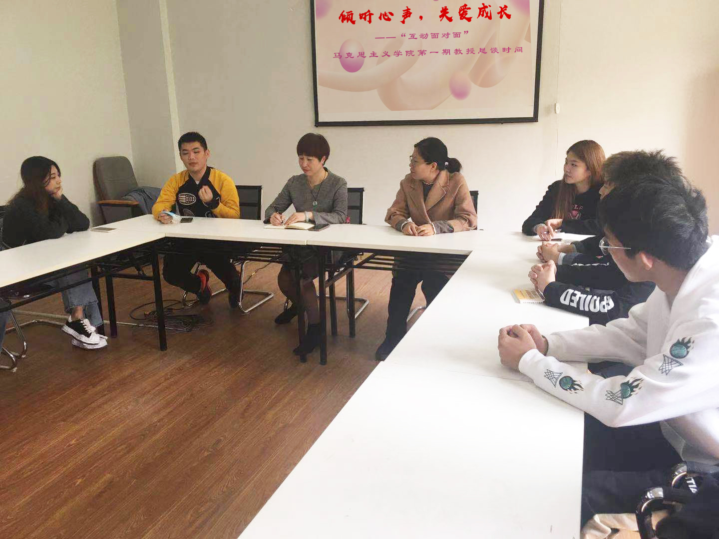 3月31日中午,为庆祝建党100周年,主动把学习党史总结以往经验、推动当前工作结合起来,将“我为师生办实事”实践活动落到实处,马克思主义学院在文东校区第五会议室举办了 “倾听心声,关爱成长”为主题的第一期“互动面对面”马克思主义学院教授恳谈时间,马克思主义学院思想道德与法律基础教研室褚艳华教授作为特邀嘉宾与文东校区大学生们展开了一场别开生面的交流、对话。