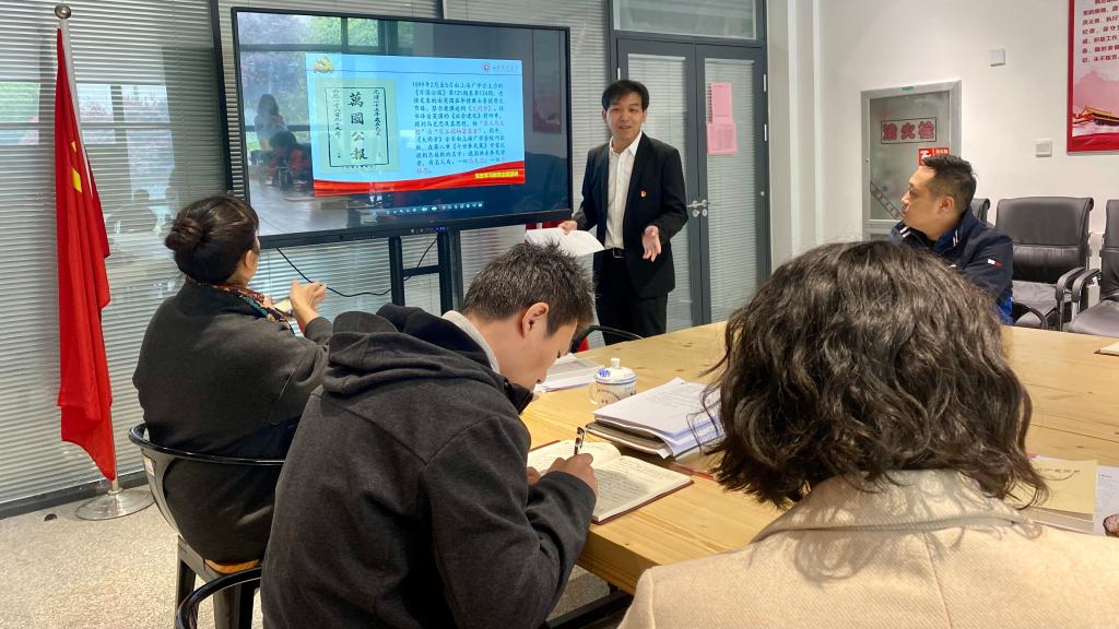 2021年4月22日上午,籍勇博士走进戏剧学院党总支教师党支部,以《中国共产党的光辉历程和历史使命》为主题,讲述了中国近现代史和中国共产党的历史。