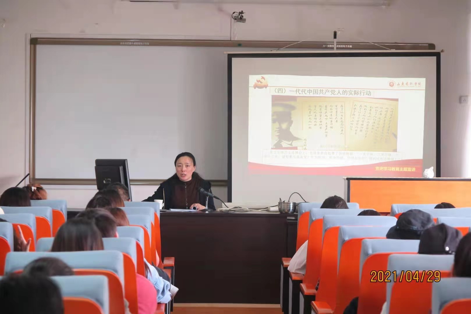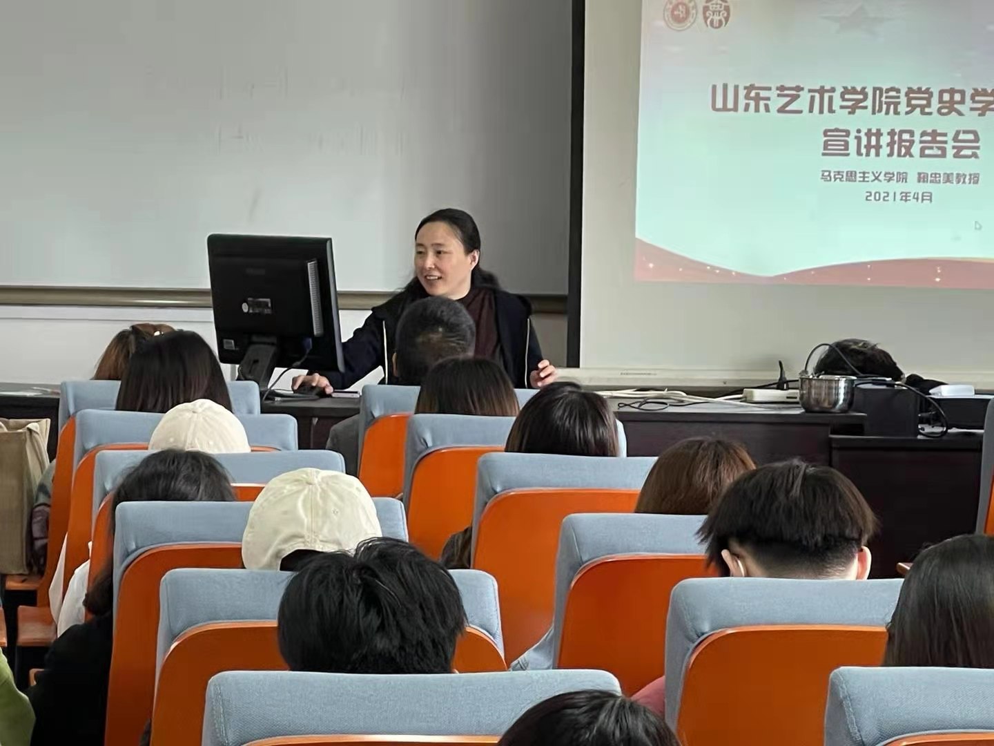 根据《山东艺术学院党史学习教育专题宣讲方案》的要求,为了更好地发挥思政课立德树人关键课程作用,马克思主义学院精心选配了八名教学骨干教师参与到学校党史学习教育宣讲团的工作中。宣讲团成员通过集体备课、专家培训、交流总结等方式,拟定宣讲主题和提纲、结合个人研究领域打磨宣讲稿,将在接下来的三周时间里深入全校十三个党总支开展对象化、分众化、互动化、多层次、内容丰富的主题宣讲,生动再现中国共产党披荆斩棘、砥砺前行的百年风雨奋斗历程,带领山艺广大师生不断从党的光辉历史中汲取阔步新征程的磅礴力量,在真学真用、真知真行中汲取宝贵经验,凝心聚力、砥砺奋进,努力推动学校实现高质量发展,以优异成绩迎接建党100周年!今天推出第五期,马克思主义学院教授鞠忠美博士走进音乐学院、现代音乐学院进行党史学习教育宣讲。