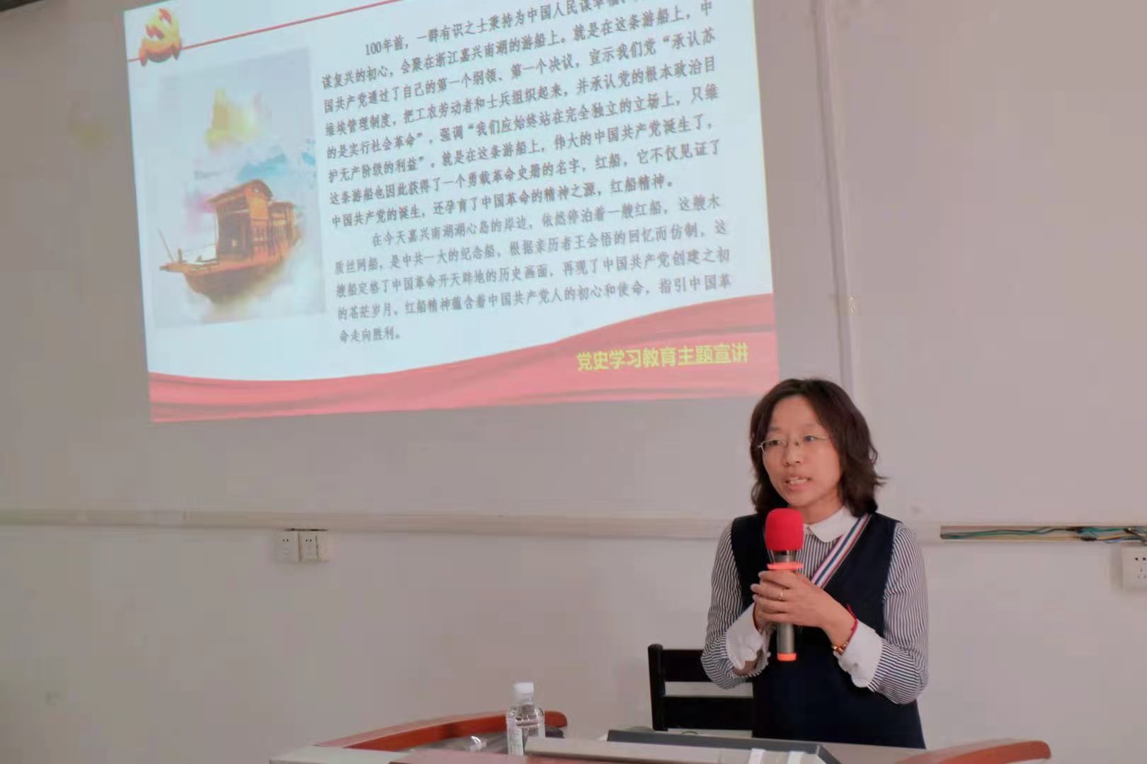 根据《山东艺术学院党史学习教育专题宣讲方案》的要求,为了更好地发挥思政课立德树人关键课程作用,马克思主义学院精心选配了八名教学骨干教师参与到学校党史学习教育宣讲团的工作中。宣讲团成员通过集体备课、专家培训、交流总结等方式,拟定宣讲主题和提纲、结合个人研究领域打磨宣讲稿,将在接下来的三周时间里深入全校十三个党总支开展对象化、分众化、互动化、多层次、内容丰富的主题宣讲,生动再现中国共产党披荆斩棘、砥砺前行的百年风雨奋斗历程,带领山艺广大师生不断从党的光辉历史中汲取阔步新征程的磅礴力量,在真学真用、真知真行中汲取宝贵经验,凝心聚力、砥砺奋进,努力推动学校实现高质量发展,以优异成绩迎接建党100周年!今天推出第七期,马克思主义学院副教授张艳走进设计学院,作“弘扬红船精神,重温初心之路”党史学习教育专题宣讲。