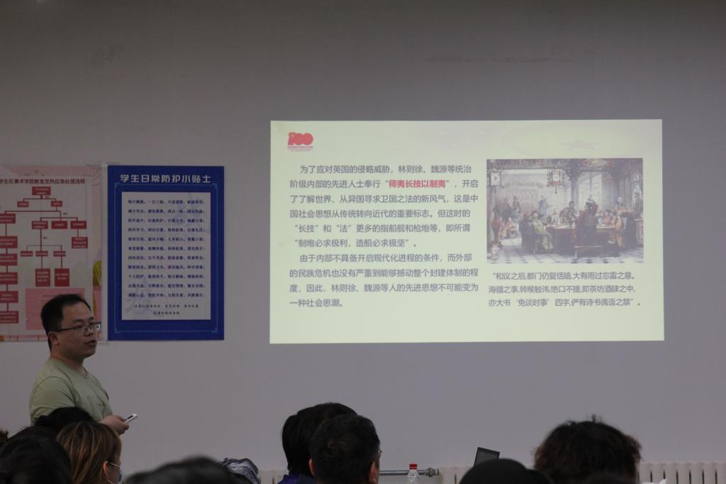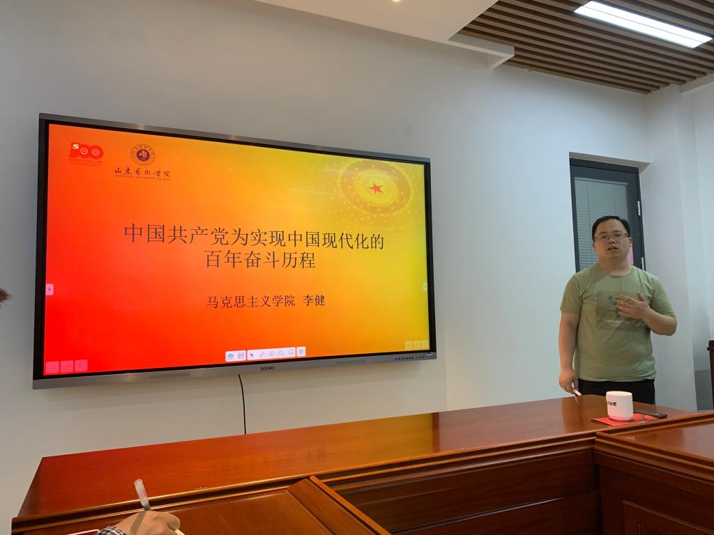 根据《山东艺术学院党史学习教育专题宣讲方案》的要求,为了更好地发挥思政课立德树人关键课程作用,马克思主义学院精心选配了八名教学骨干教师参与到学校党史学习教育宣讲团的工作中。宣讲团成员通过集体备课、专家培训、交流总结等方式,拟定宣讲主题和提纲、结合个人研究领域打磨宣讲稿,将在接下来的三周时间里深入全校十三个党总支开展对象化、分众化、互动化、多层次、内容丰富的主题宣讲,生动再现中国共产党披荆斩棘、砥砺前行的百年风雨奋斗历程,带领山艺广大师生不断从党的光辉历史中汲取阔步新征程的磅礴力量,在真学真用、真知真行中汲取宝贵经验,凝心聚力、砥砺奋进,努力推动学校实现高质量发展,以优异成绩迎接建党100周年!今天推出第八期,马克思主义学院李健老师走进美术学院、后勤管理处党总支作“中国共产党为实现中国现代化的百年奋斗历程”党史学习教育宣讲。