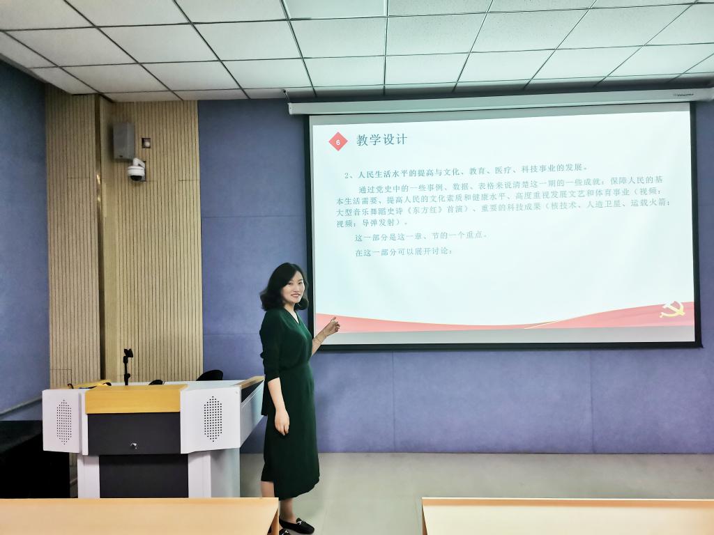 马克思主义学院“基础”、“纲要”、“概论”教研室代表武玲娟、李琳娟、籍勇三位教师分别就“四史”教育如何融入思政课教学开展15分钟说课。褚艳华教授、鞠忠美教授、韩锡玲副教授对三位老师的表现进行了分析点评,充分肯定了各位老师扎实的教学基本功和丰富的知识储备,并也客观指出了存在的问题和今后的努力方向。