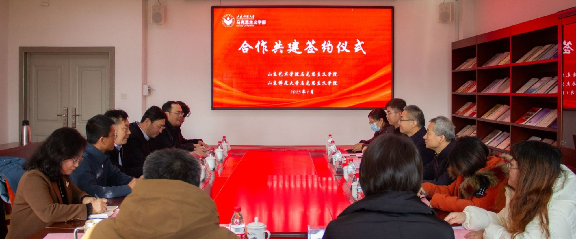 山东师范大学马克思主义学院与山东艺术学院马克思主义学院的合作共建,既是落实《普通高等学校马克思主义学院建设标准(2023年版)》相关要求的重要举措,也是体现两所高校亲密友谊的重要见证。