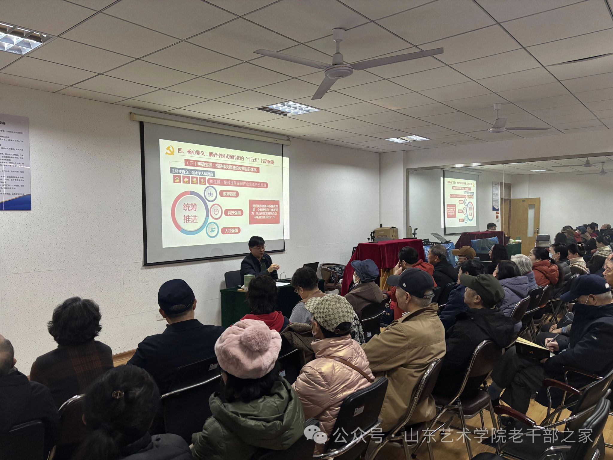 12月19日,山东高校宣讲团成员、马克思主义学院教授王众在文东校区老干部活动中心开展党的二十届四中全会精神宣讲。报告会由离退休党委书记陈秀芹主持,离退休党委委员、教师代表参加报告会。